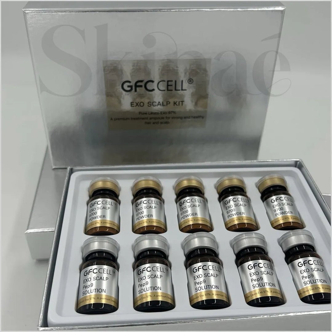 The GFC Cell Exo Scalp Kit is a Korean-made exosome solution designed to support hair health. With 16 billion exosomes per vial, this treatment helps with weak roots, thinning hair, and scalp care. Perfect for use in exosomes injections for hair loss, it’s suitable for both men and women. Available now in Pakistan at Skinae.pk.