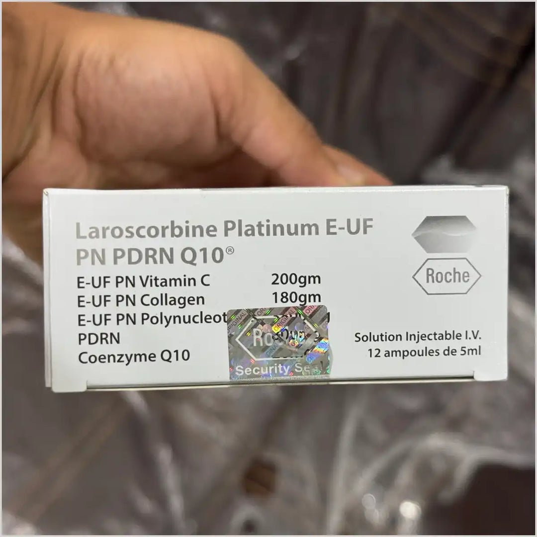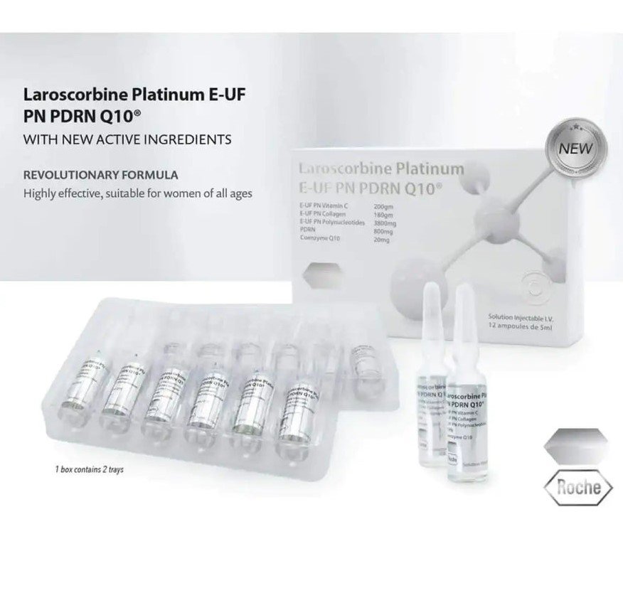 Laroscorbine Platinum E UF PN PDRN Q10 – Advanced skin rejuvenation and anti-aging injection, formulated with potent antioxidants, PDRN, and Coenzyme Q10 to promote skin regeneration, elasticity, and a radiant, youthful glow. Ideal for enhancing skin vitality and overall complexion health.