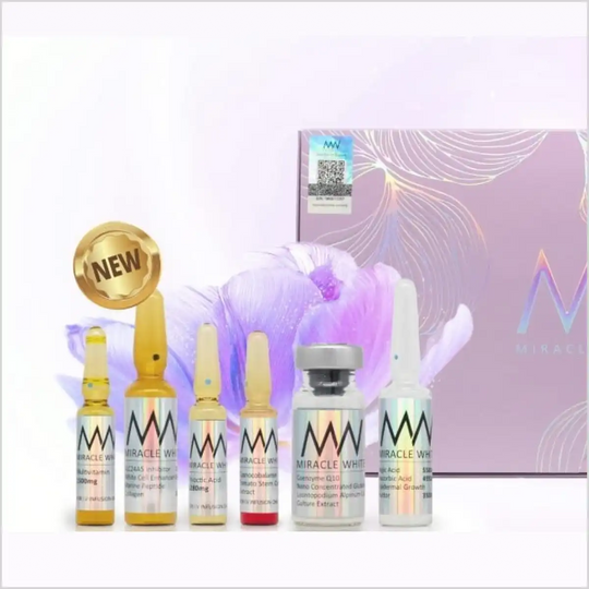 Miracle White Glutathione 60000mg Whitening Injections are designed to brighten skin tone, reduce pigmentation, and promote a youthful glow. Packed with powerful antioxidants, these injections help detoxify the skin, reduce dark spots, and support overall skin health.